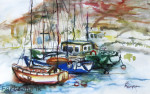 Ich habe während dieser herrlichen, von Renate Moran geleiteten Reise zu folgendem Thema „WENN SICH WIND UND WOLKE MIT EL SILBO ÜBER FAYAL BREZAL FORMATIONEN UND BARRANCOS VERMISCHT“ das Bild La Gomera gemalt und dazu geschrieben: