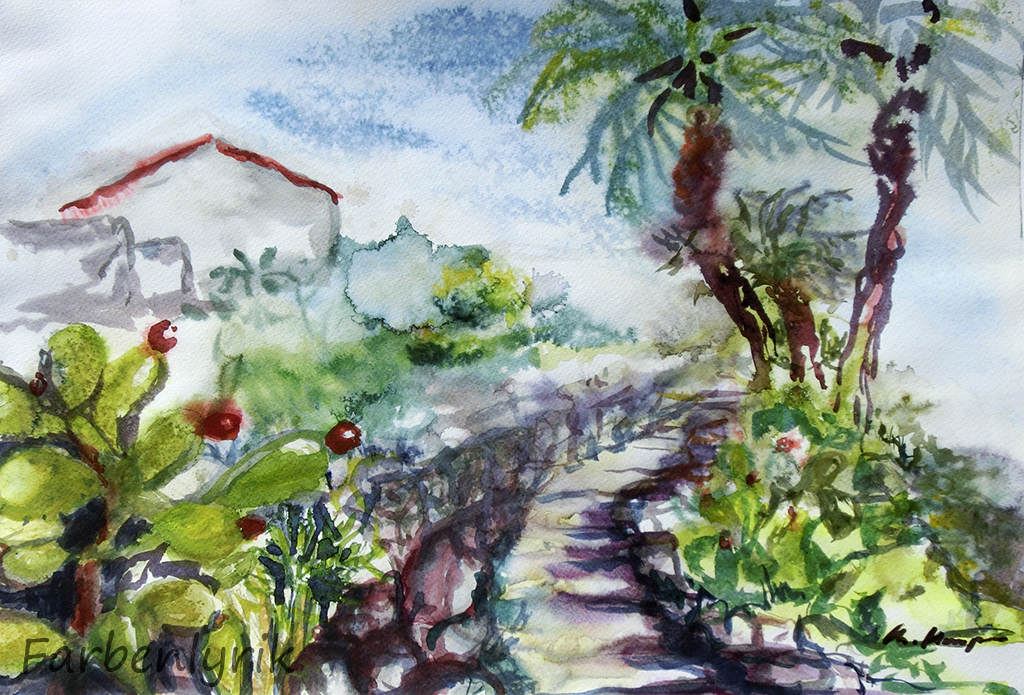 Im Januar führte mich eine wunderbare Malreise auf die kanarische Insel La Gomera. Hier sind sind zahlreiche Aquarelle entstanden, durch die ich wiedergeben möchte, wie sehr mich Landschaft und Pflanzenwelt dieser Insel beeindruckt haben.